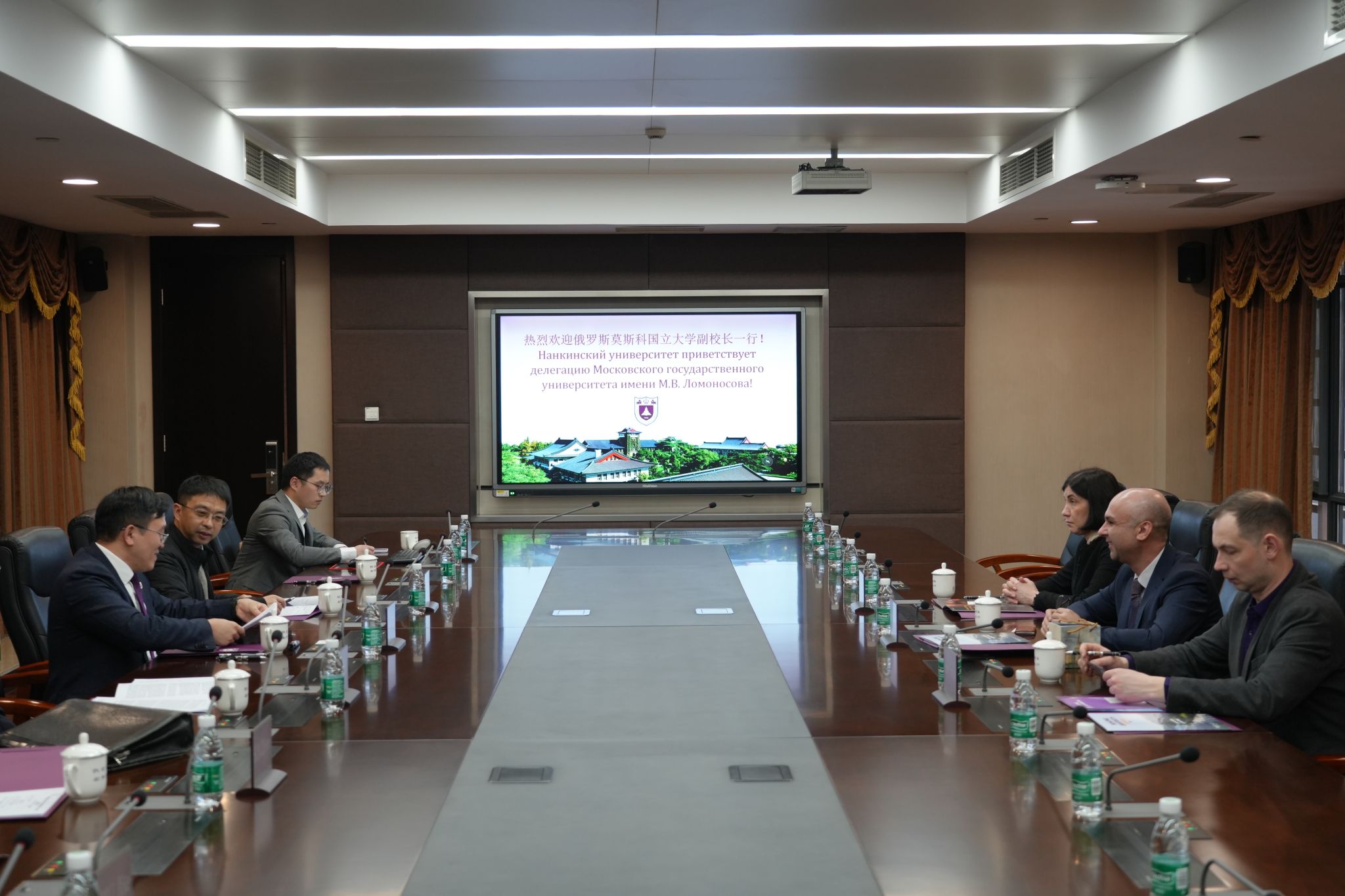 On the afternoon of March 13, Yuri Mazei, Vice President of Lomonosov Moscow State University (LMSU) led a delegation to NJU Xianlin Campus. Ding Aijun, Assistant to the President of NJU, had a discussion with the guests. The meeting was attended by representatives from the School of Geography and Ocean Science, the Department of Mathematics, the Department of Russian at the School of Foreign Studies, and the International Affairs Office.
