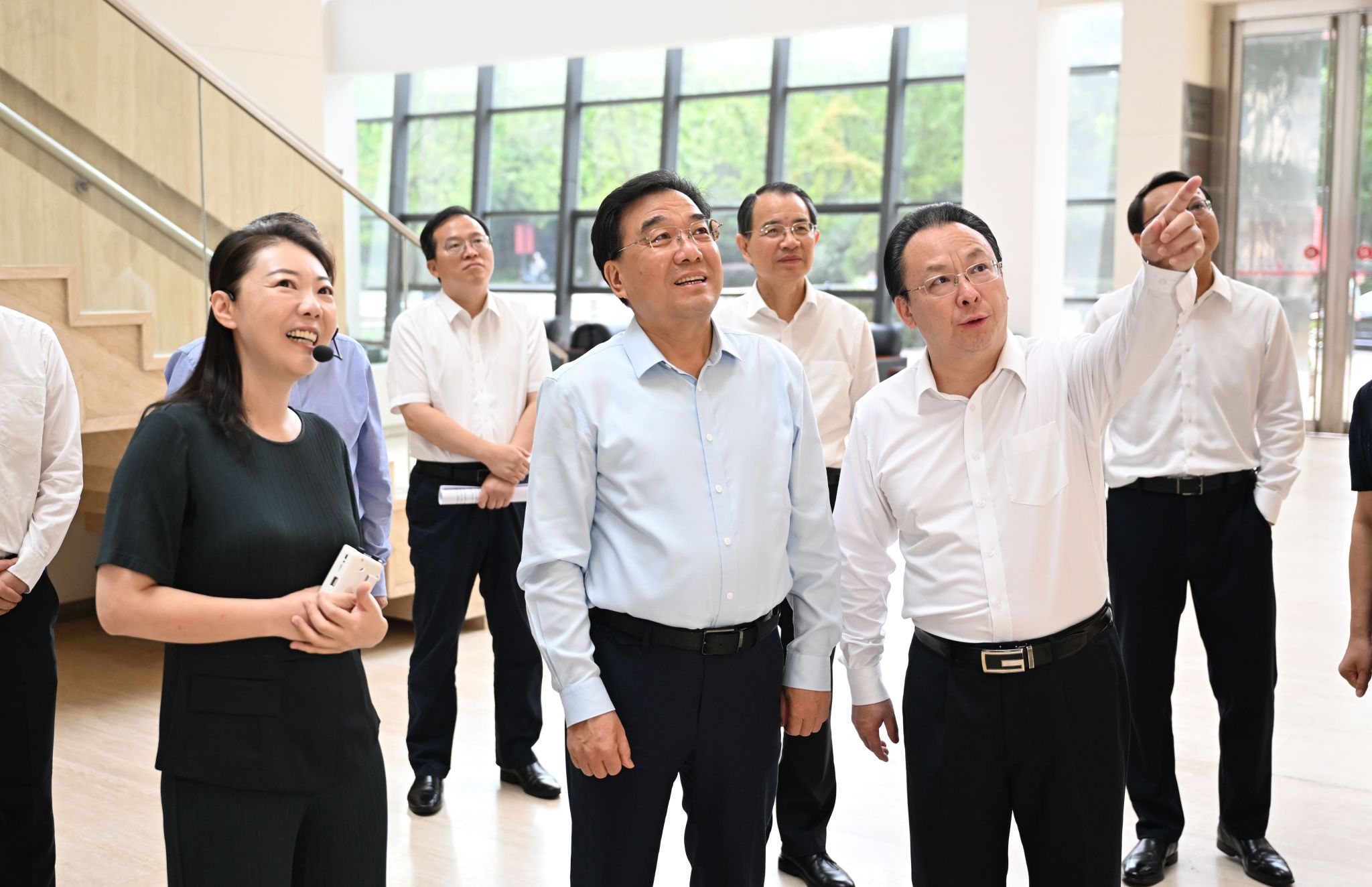 On July 14, 2023, Xin Changxing, Secretary of the Jiangsu Provincial Party Committee, visited NJU. He was accompanied by Tan Tieniu, Secretary of the CPC NJU Committee and Academician of the CAS, along with Tan Zhemin, President of NJU, and Academician of the CAS.