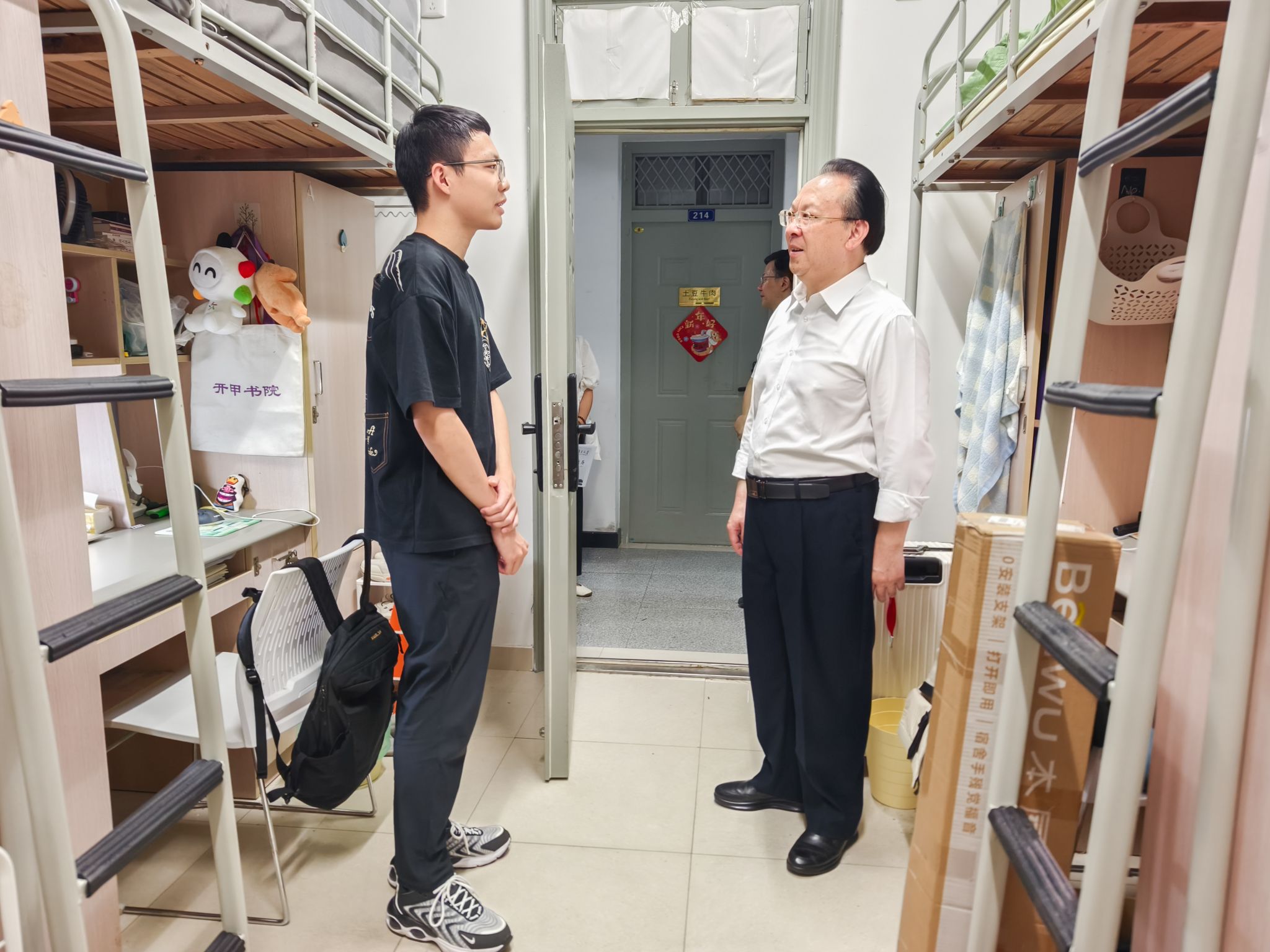 南园11舍在暑期进行了升级改造。谭铁牛考察了改造情况,对目前存在的问题提出针对性的整改意见。他强调,在学生入住之前,必须逐一检查每间宿舍的家具和空调,确保所有设备都能正常使用。