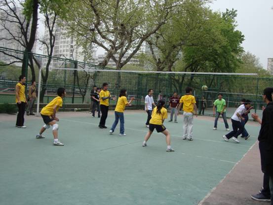 计算机系统一身着黄色队服,充满了青春的朝气。作为本场比赛的挑战者,计算机队一上场就以不输人的气势给对手一个下马威,强有力的发球,高难度的扑救,默契的配合和坚定的意志是他们克敌的法宝。反观生科队,稳扎稳打,不急不躁,队员们依靠过硬的心理素质和有效的战术配合,一直占据着场上比赛的主动,最后以25:21先拔头筹,不愧是上届联赛的亚军。进入第二局后,两支队伍都找到了最佳的状态,得分不相上下,场面十分胶着,各自的拉拉队都大声地为自己的队伍鼓劲。关键时刻,老牌强队生科队力挽狂澜,有惊无险的以25:20拿下了第二局。第三局的比赛中出现了一边倒的局面,生科队兵不血刃的以25:11完胜对手,从而以3:0的完美表现给自己的赛季首场秀划上了圆满的句号。另一个场地上,地海队对工程队的比赛也在紧张的进行着,最终工程以3:0的总比分笑到了最后,三局的比分分别是25:11,25:19和25:14。
