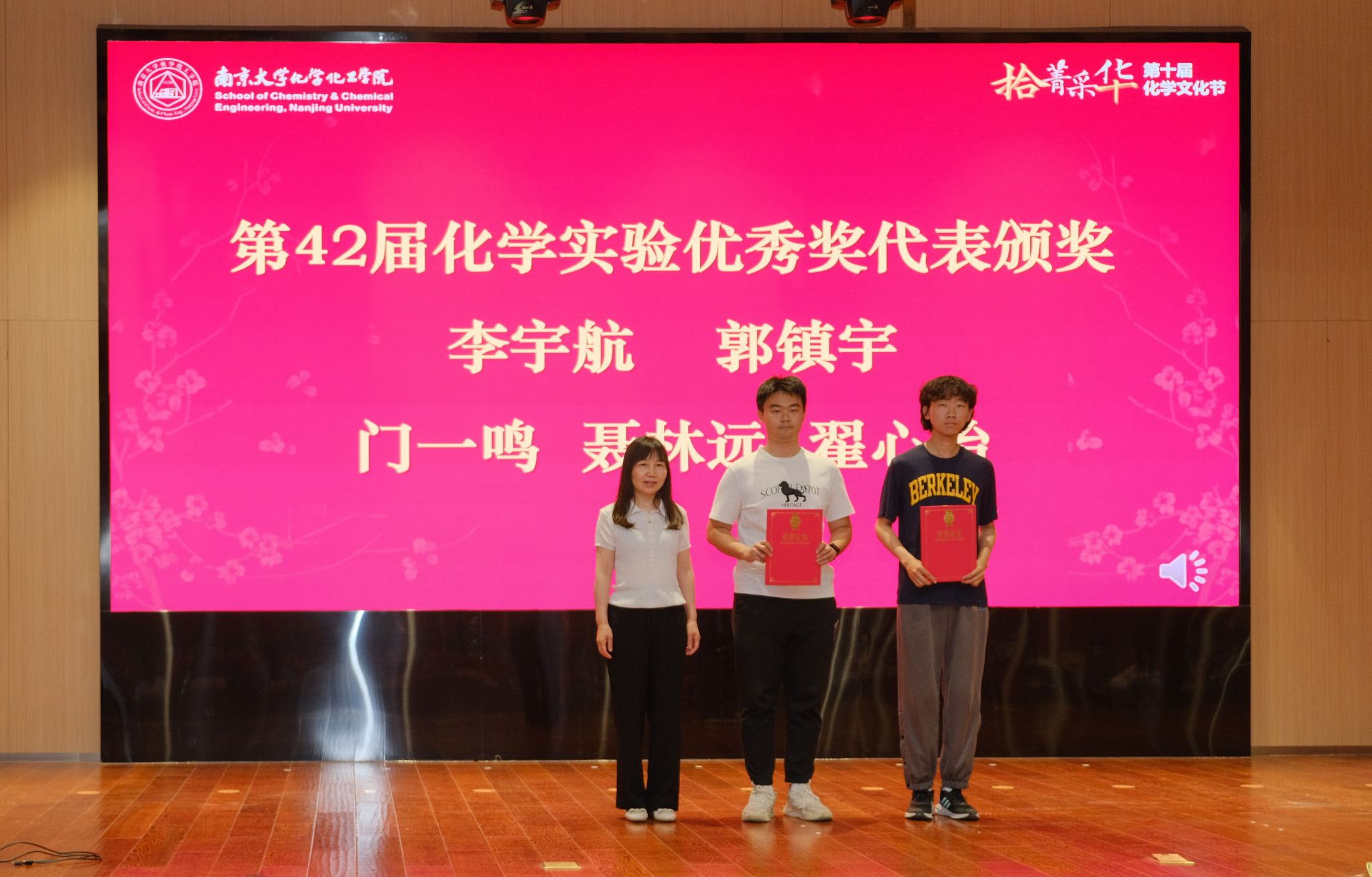 化院党委副书记吴可宣读对第42届化学实验优秀奖的表彰决定,化学国家级实验教学示范中心主任文伟为获奖学生代表颁奖。1984年戴安邦先生将他获得国家自然科学二等奖的奖金和稿费等收入作为基金,在化学化工学院设立了“化学实验优秀奖”,奖励在化学实验中表现突出的学生和老师。